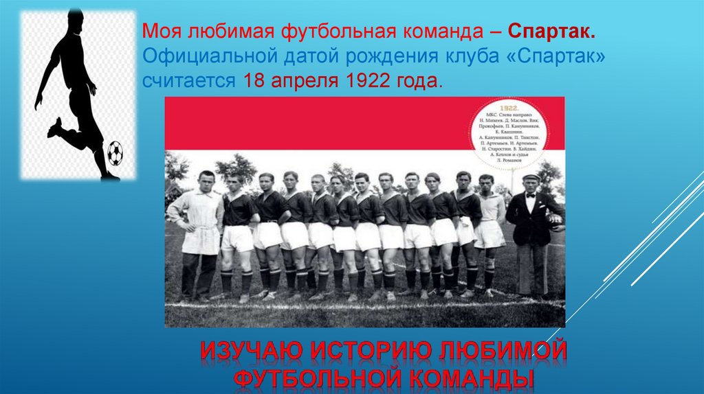 Моя любимая футбольная команда – Спартак.Официальной датой рождения клуба «Спартак»