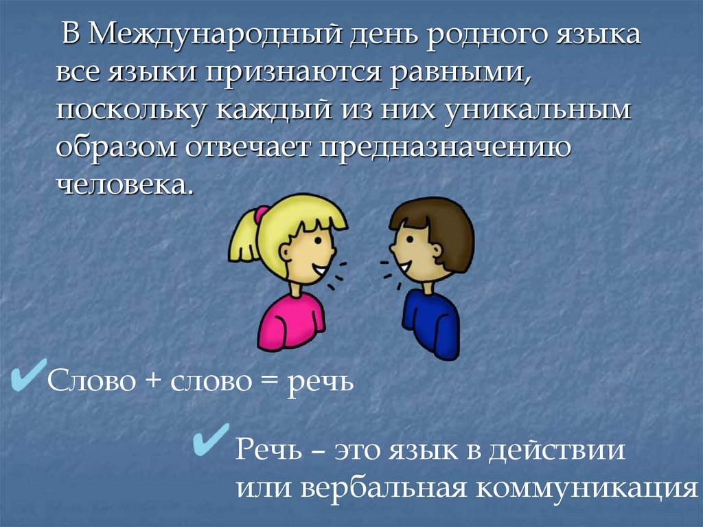 1. 21 февраля – Международный день родного языка! Сегодня мы поговорим о языке, как о средстве общения.
