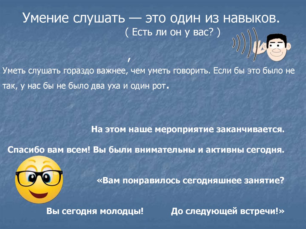Умение слушать — это один из навыков.( Есть ли он у вас? )