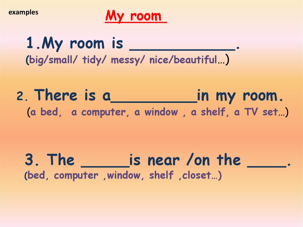 (big/small/ tidy/ messy/ nice/beautiful…)