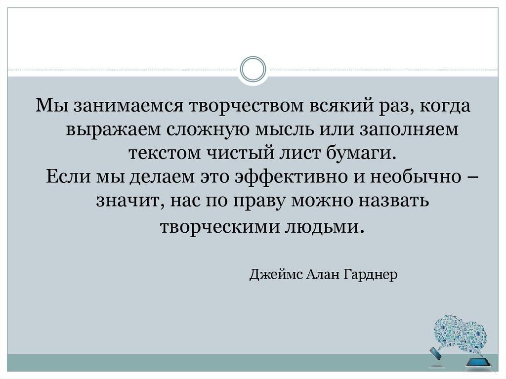 Мы занимаемся творчеством всякий раз, когдавыражаем сложную мысль или заполняем