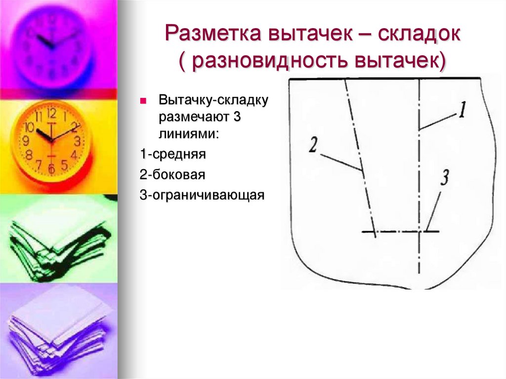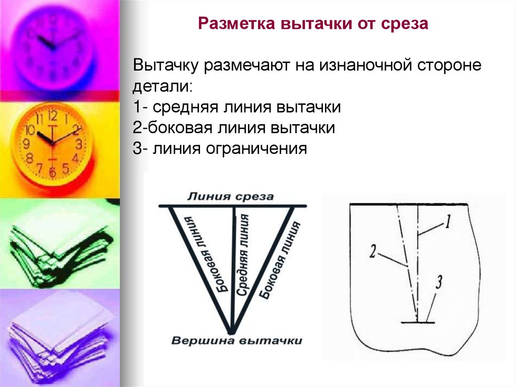 Разметка вытачки от срезаВытачку размечают на изнаночной стороне