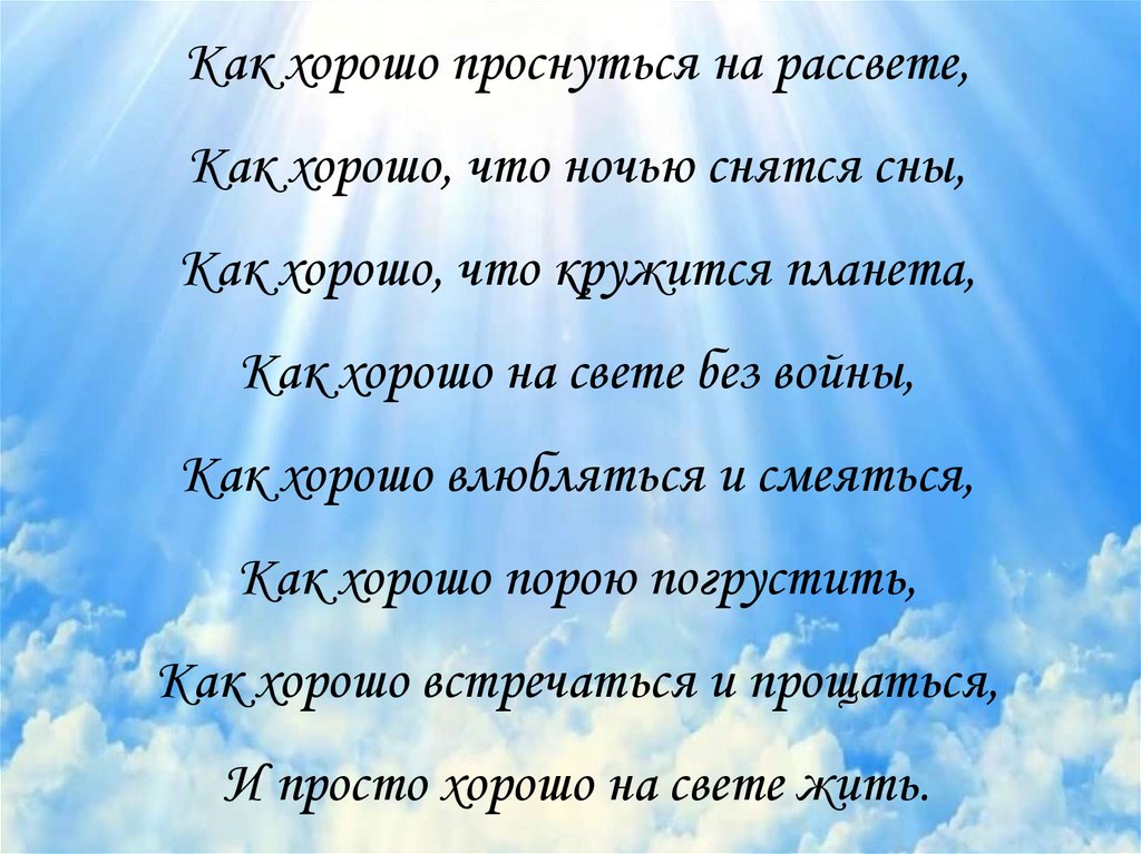 Как хорошо проснуться на рассвете,Как хорошо, что ночью снятся сны,