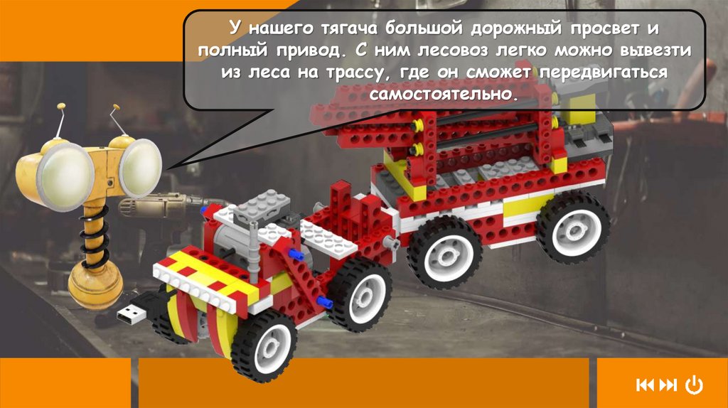 У нашего тягача большой дорожный просвет иполный привод. С ним лесовоз легко можно вывезти