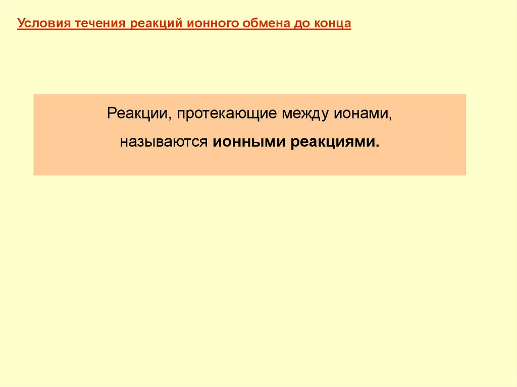 Условия течения реакций ионного обмена до концаРеакции, протекающие между ионами,