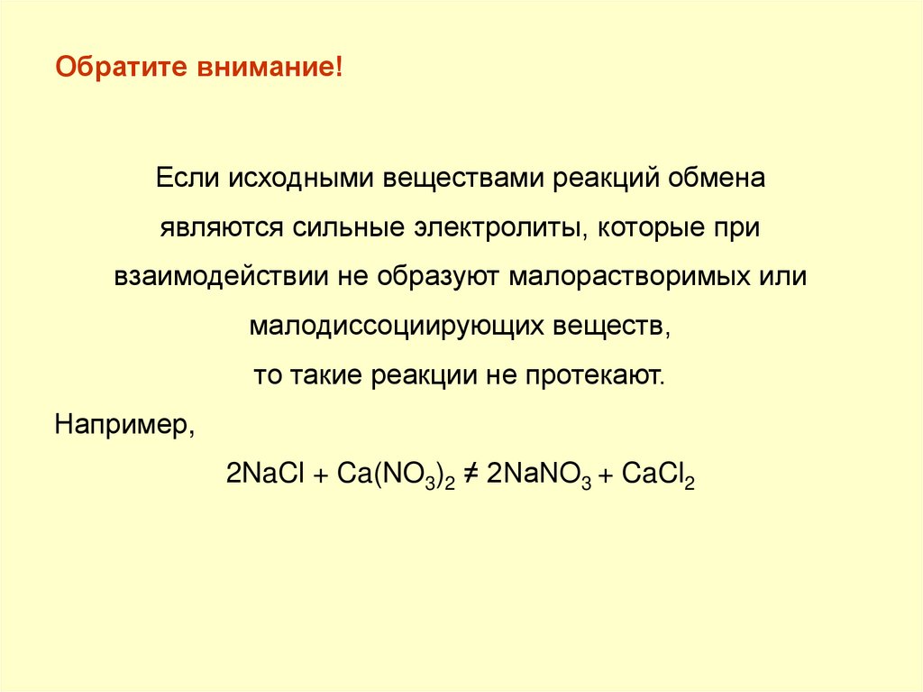 Условия течения реакций ионного обмена до концаУсловия течения реакций обмена между сильными
