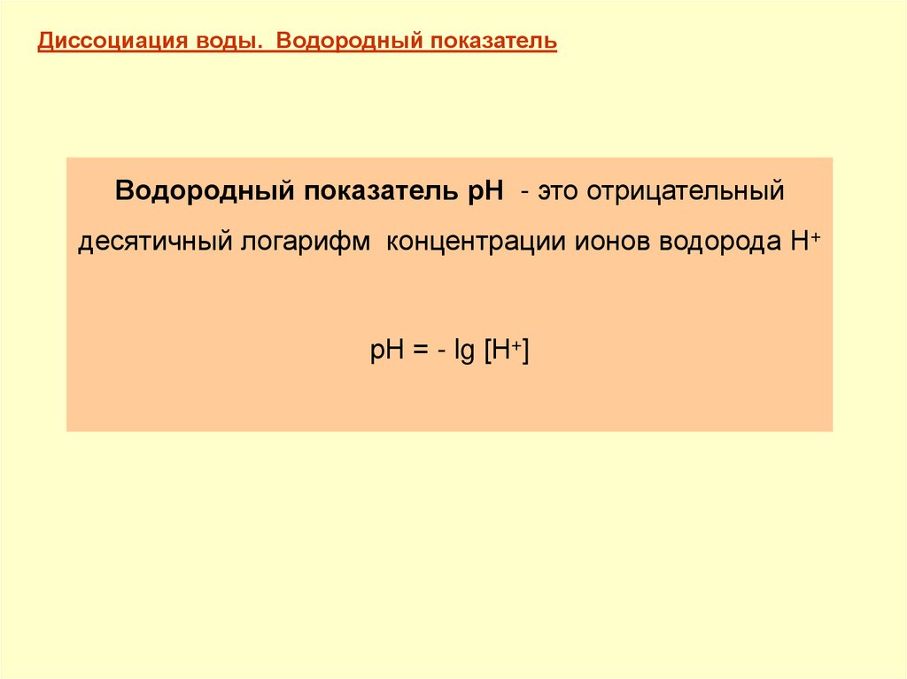 Диссоциация воды. Водородный показательВодородный показатель рН - это отрицательный