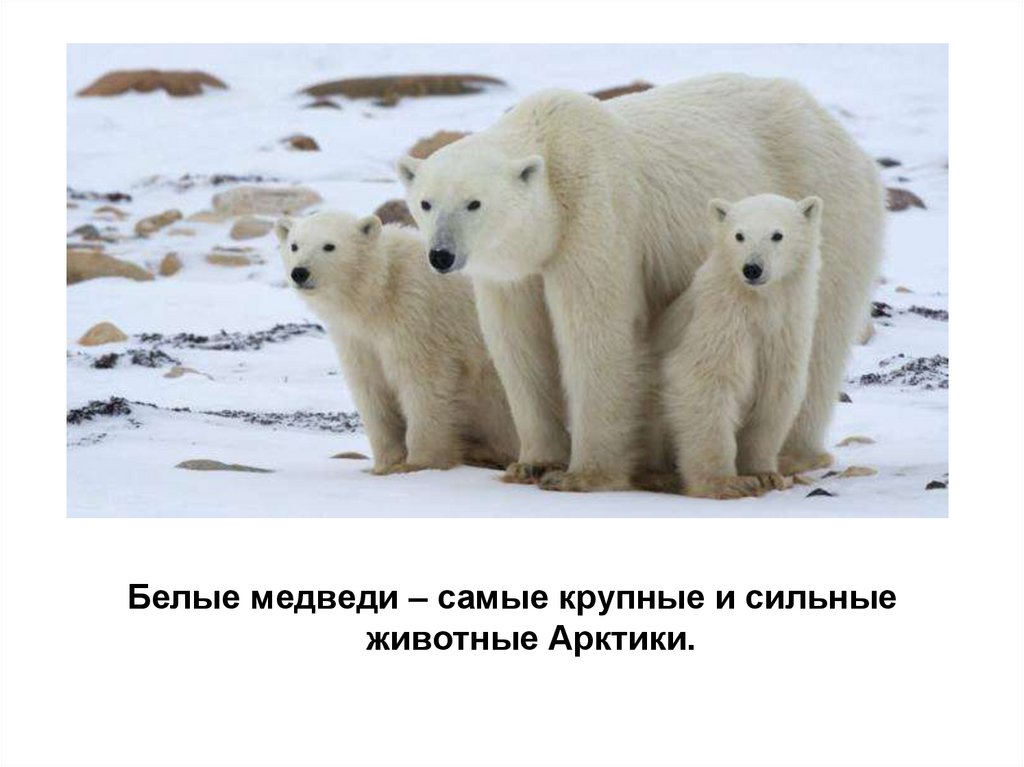 Белые медведи – самые крупные и сильныеживотные Арктики.