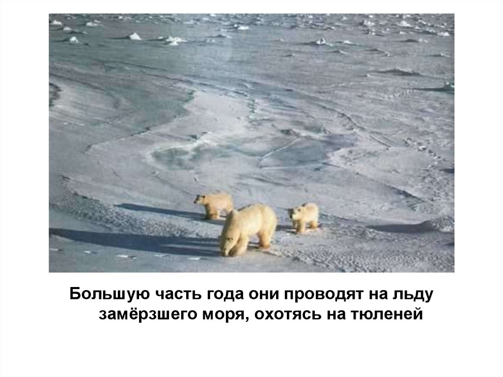 Большую часть года они проводят на льдузамёрзшего моря, охотясь на тюленей
