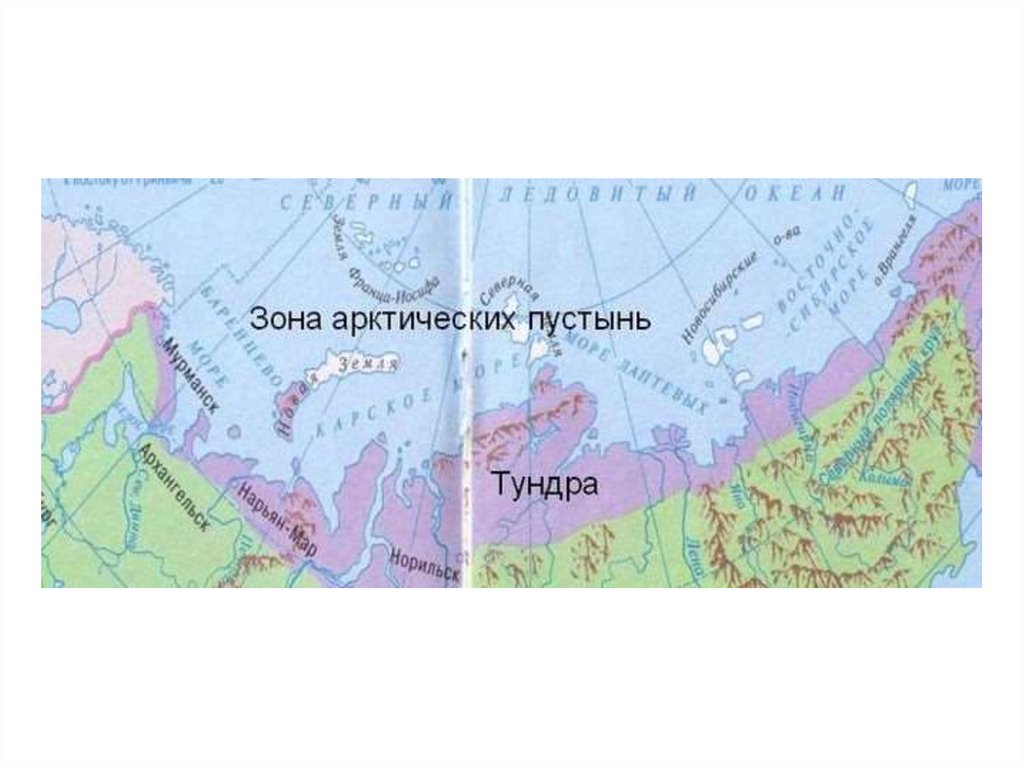 На островах Северного Ледовитого океана расположена зонаарктических пустынь