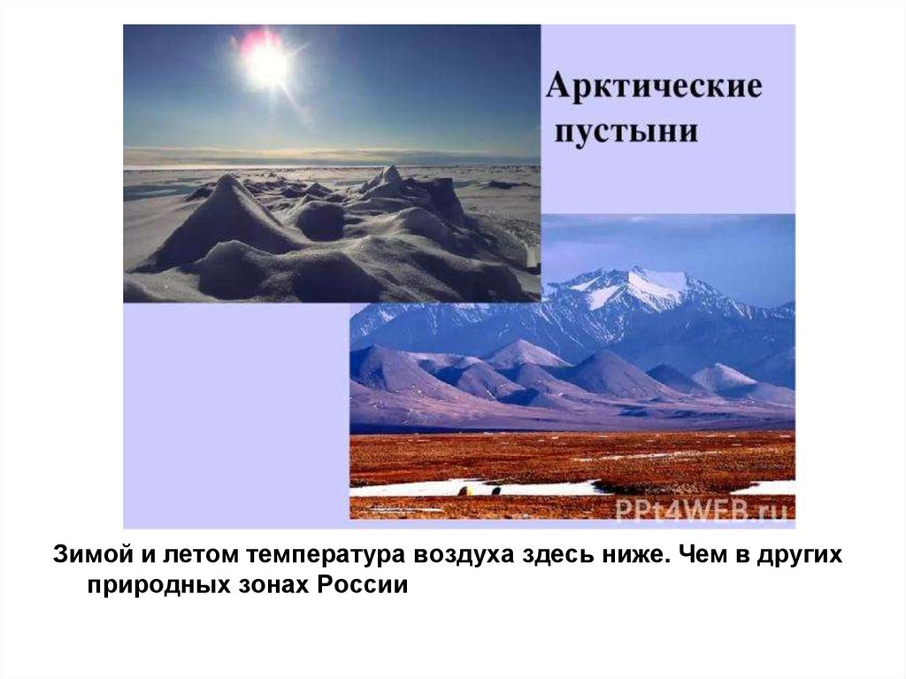Зимой и летом температура воздуха здесь ниже. Чем в другихприродных зонах России