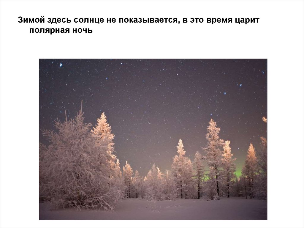 Зимой здесь солнце не показывается, в это время царитполярная ночь
