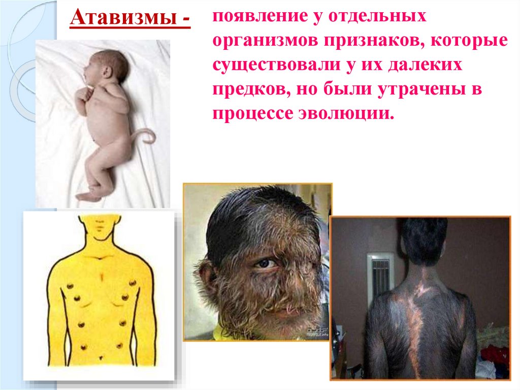 Атавизмы - появление у отдельныхорганизмов признаков, которые