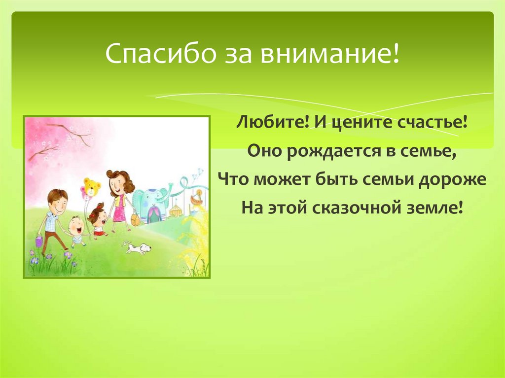 Спасибо за внимание!Любите! И цените счастье!