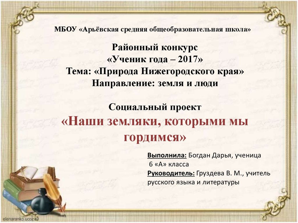 учащихся о наших земляках, которыми мы можем