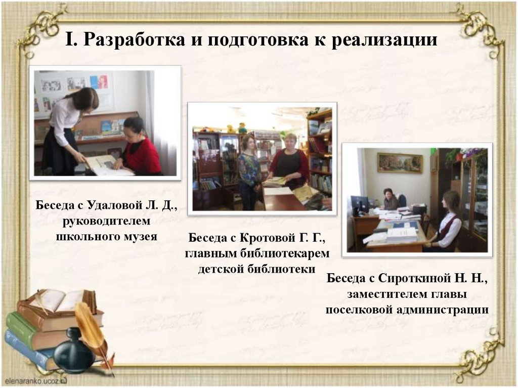 I. Разработка и подготовка к реализацииБеседа с Удаловой Л. Д.,
