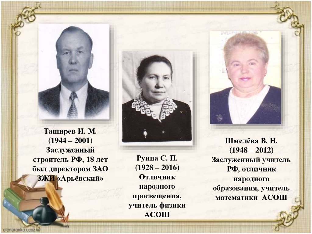 почётным жителям р. п. Арья, и информация об этих