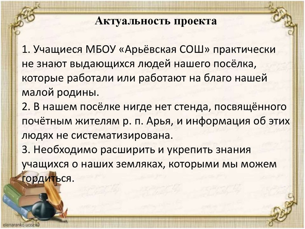 Актуальность проекта1. Учащиеся МБОУ «Арьёвская СОШ» практически