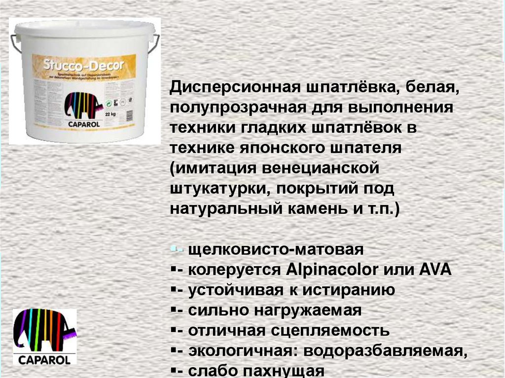 Дисперсионная шпатлёвка, белая,полупрозрачная для выполнения