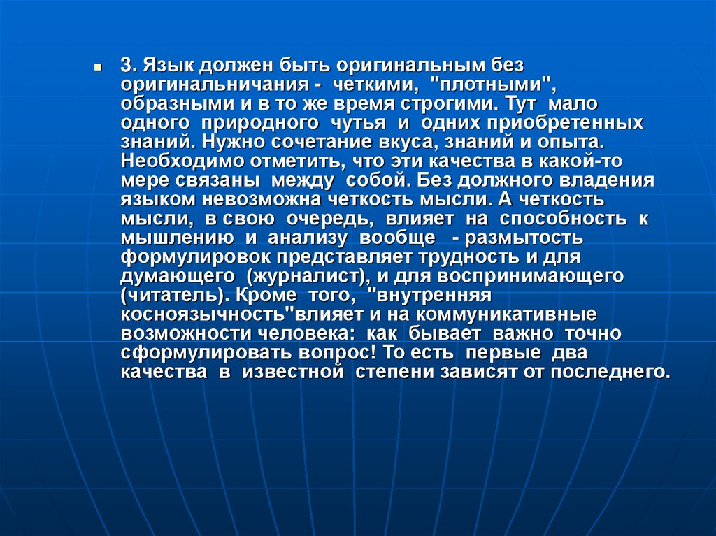 3. Язык должен быть оригинальным безоригинальничания - четкими, "плотными",