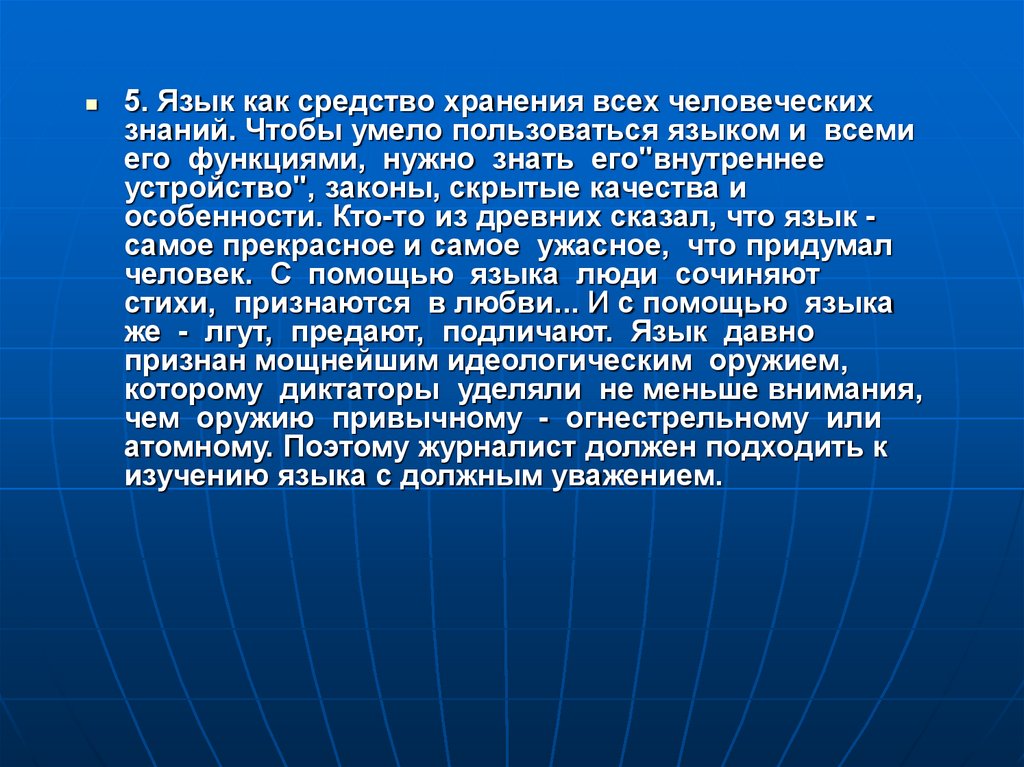 5. Язык как средство хранения всех человеческихзнаний. Чтобы умело пользоваться языком и всеми