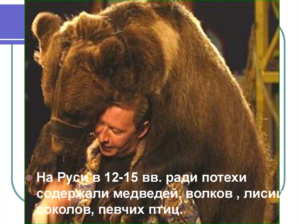 На Руси в 12-15 вв. ради потехисодержали медведей, волков , лисиц,