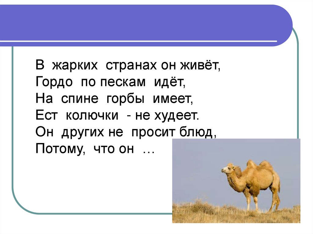 Верблюду плохо от тоски,Он хочет в жаркие пески!