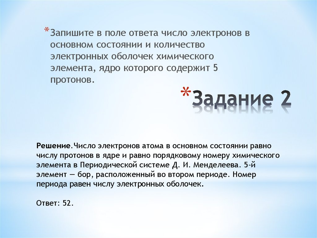 * Запишите в поле ответа число электронов восновном состоянии и количество