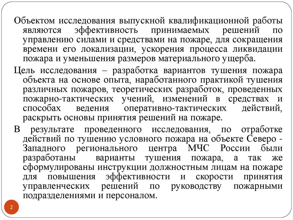 В дипломном проекте по теме «Организация тушения пожаровобъектов с массовым пребыванием людей на примере Северо Западного регионального центра МЧС России» выполнено
