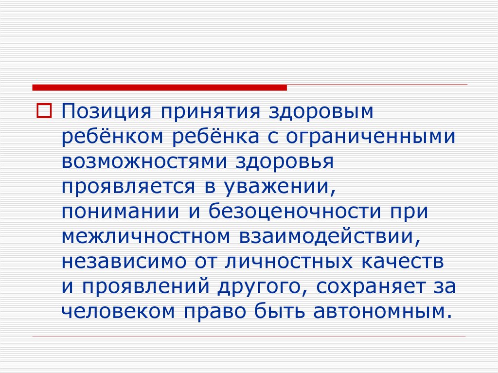 Позиция принятия здоровымребёнком ребёнка с ограниченными