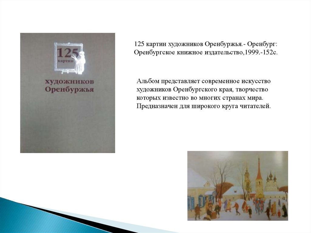 125 картин художников Оренбуржья.- Оренбург:Оренбургское книжное издательство,1999.-152с.