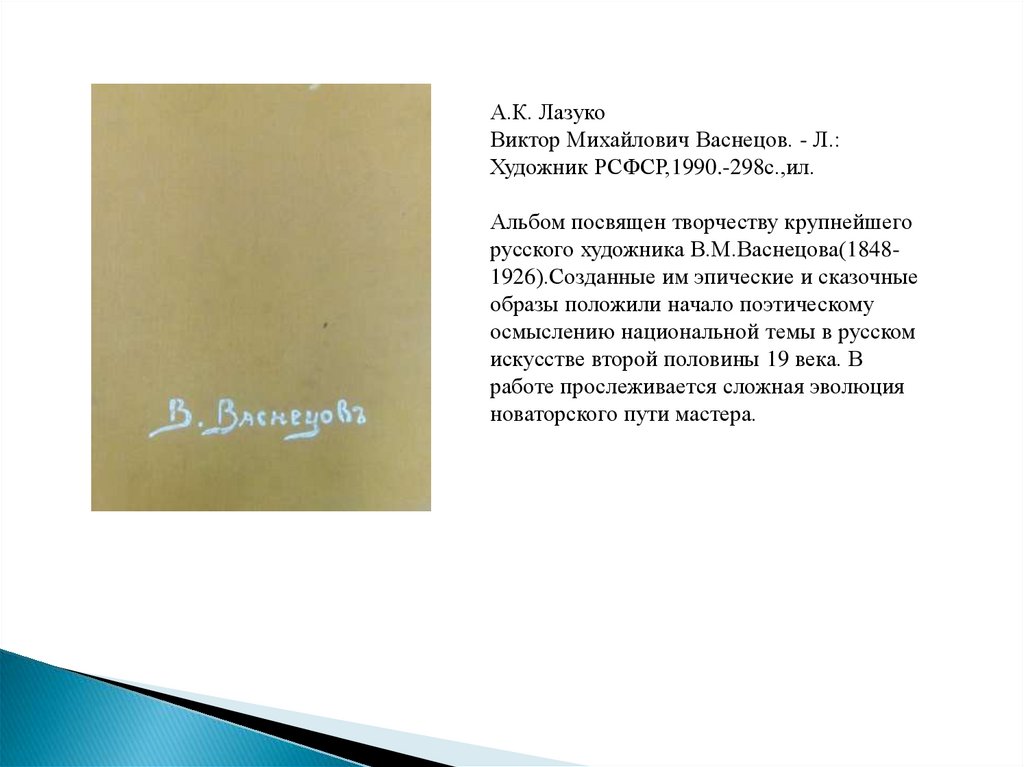 А.К. ЛазукоВиктор Михайлович Васнецов. - Л.: