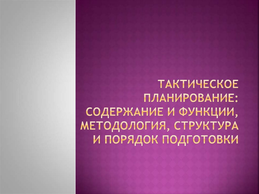 Тактическое планирование: Содержание и функции, методология, структура и порядок подготовки
