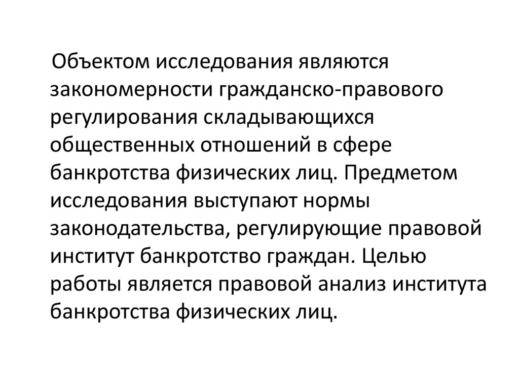 банкротства физических лиц. Предметом