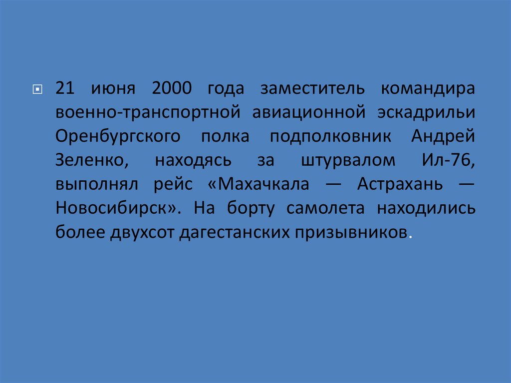 21 июня 2000 года заместитель командиравоенно-транспортной авиационной эскадрильи