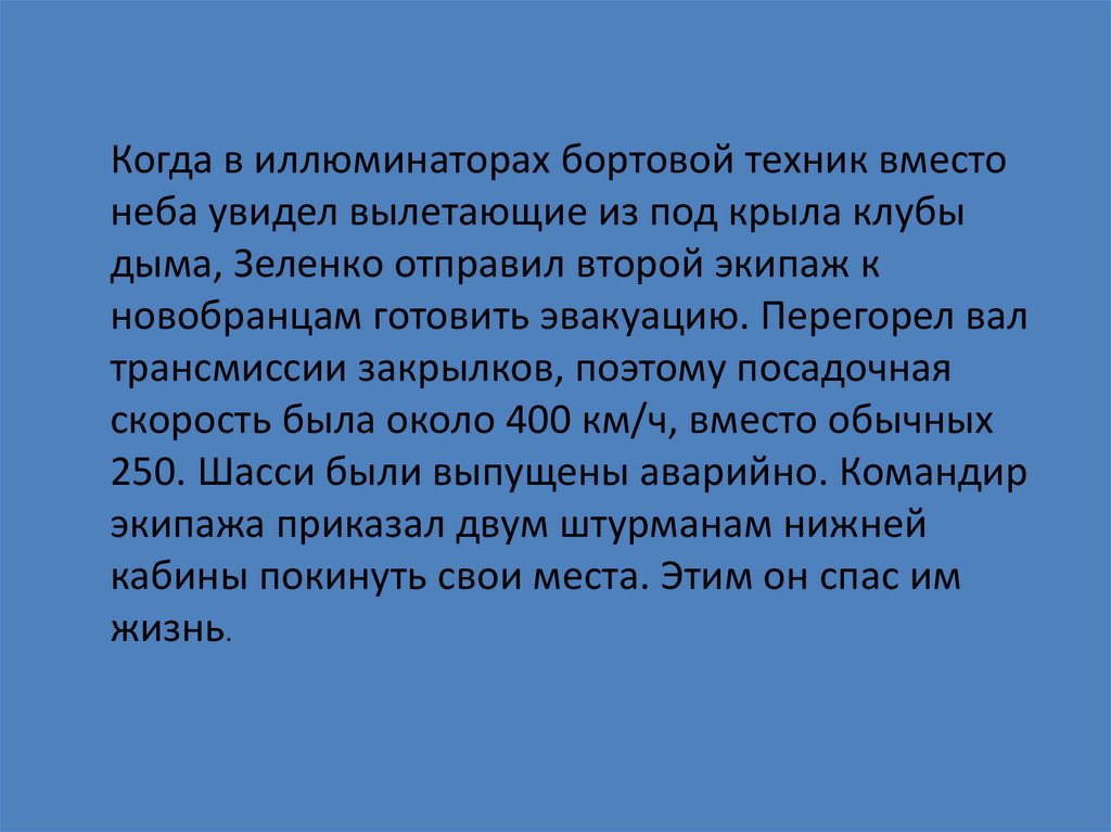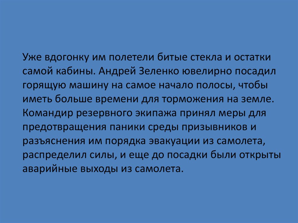 Уже вдогонку им полетели битые стекла и остаткисамой кабины. Андрей Зеленко ювелирно посадил