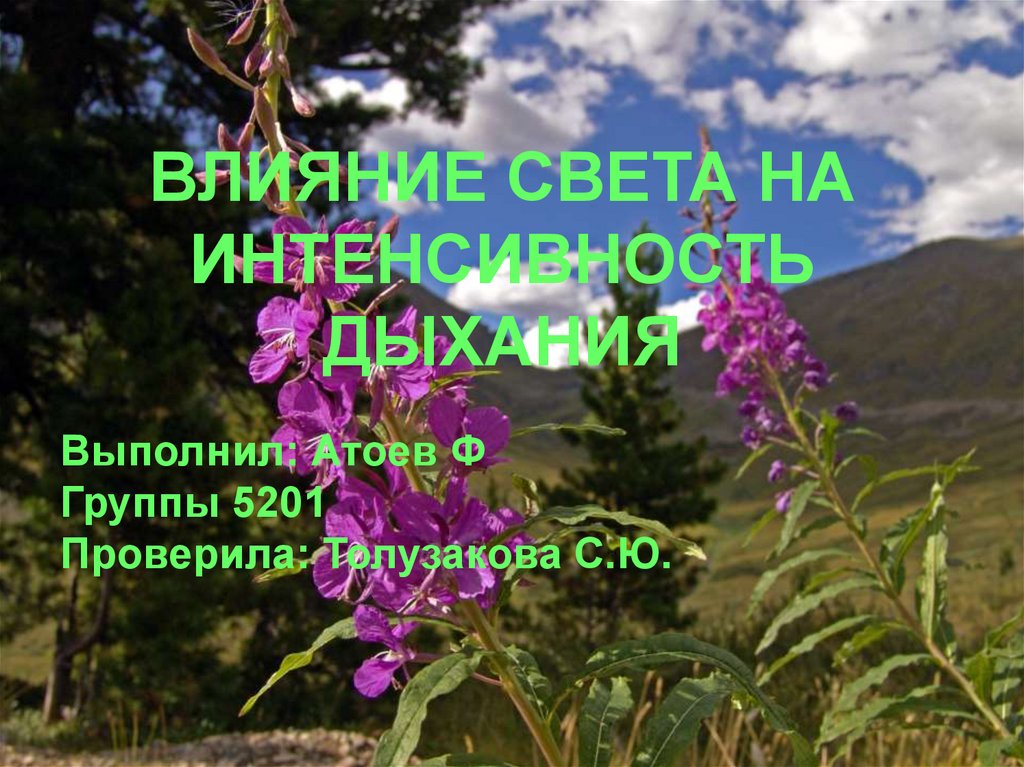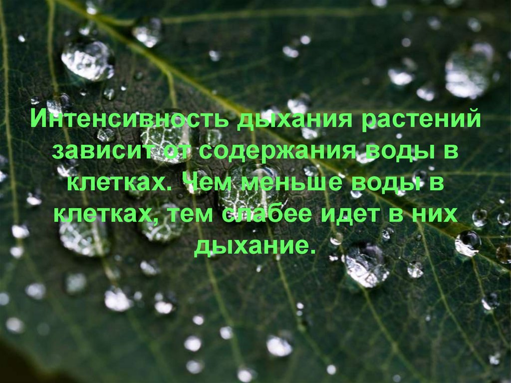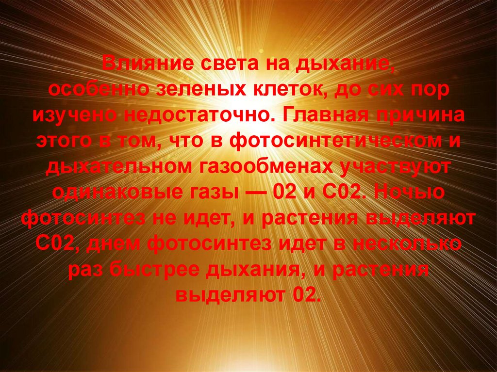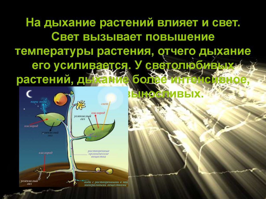 На дыхание растений влияет и свет.Свет вызывает повышение