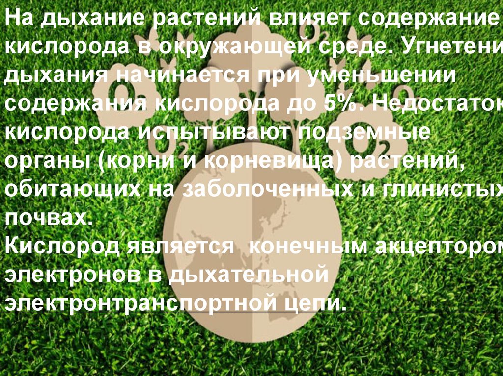 На дыхание растений влияет содержаниекислорода в окружающей среде. Угнетени