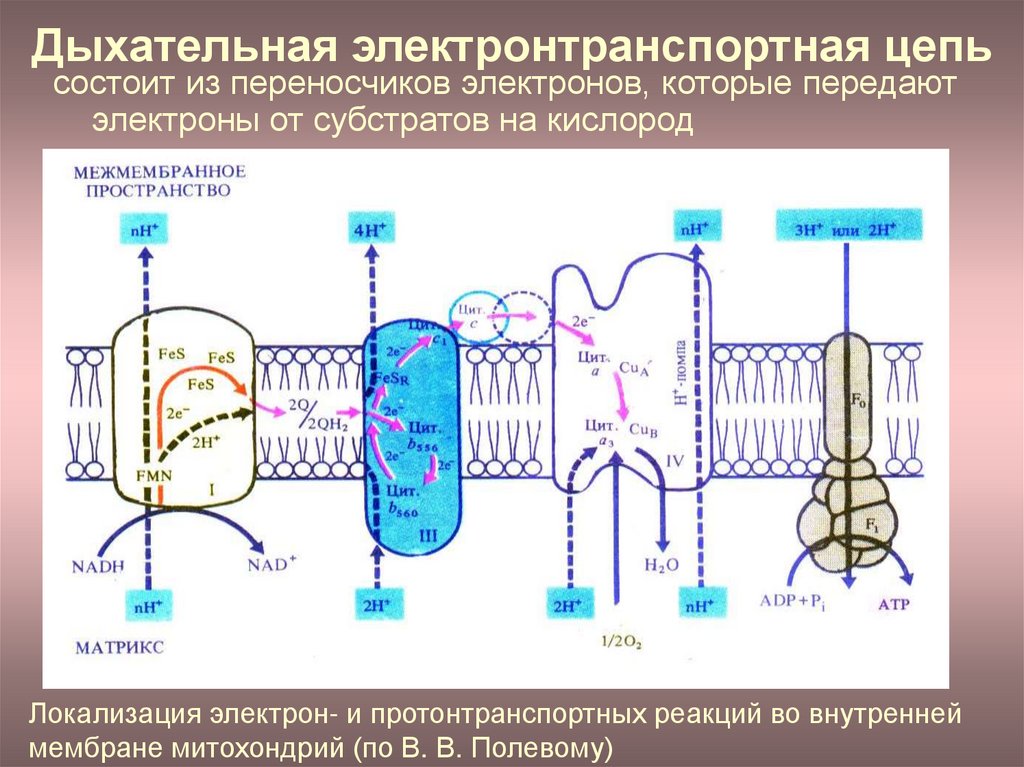 Дыхательная электронтранспортная цепьсостоит из переносчиков электронов, которые передают