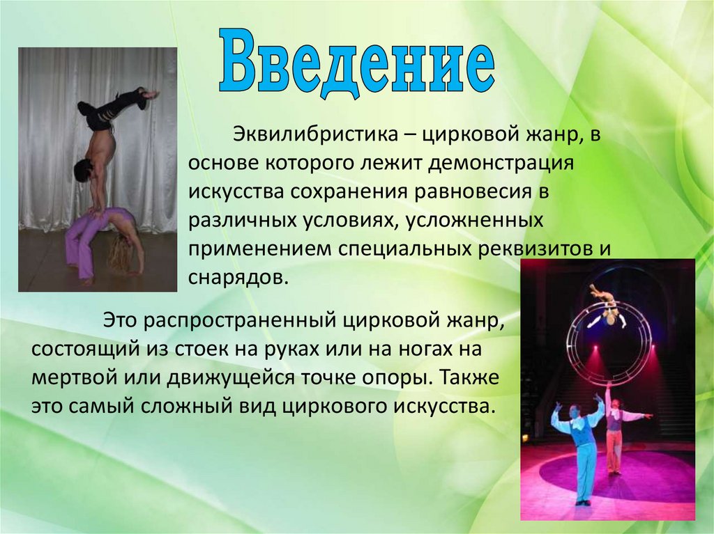 Эквилибристика – цирковой жанр, воснове которого лежит демонстрация