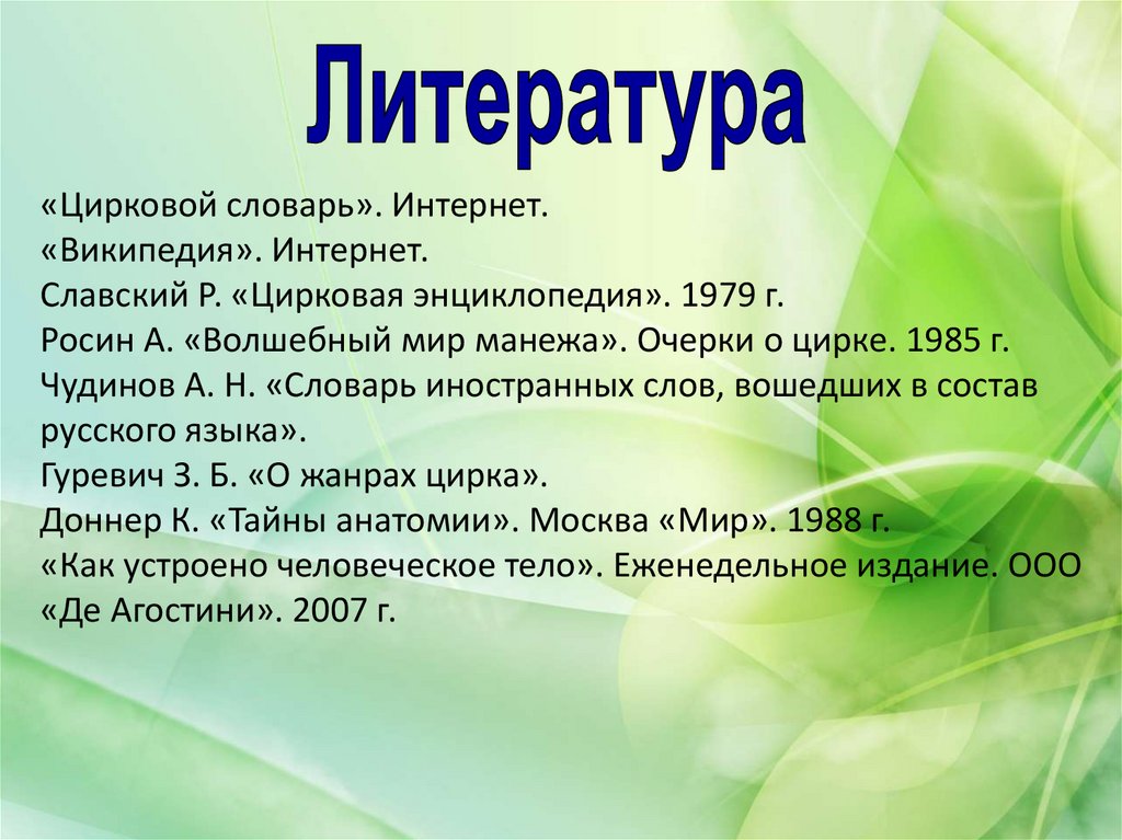 «Цирковой словарь». Интернет.«Википедия». Интернет.