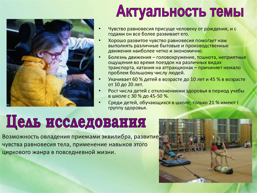Возможность овладения приемами эквилибра, развитие