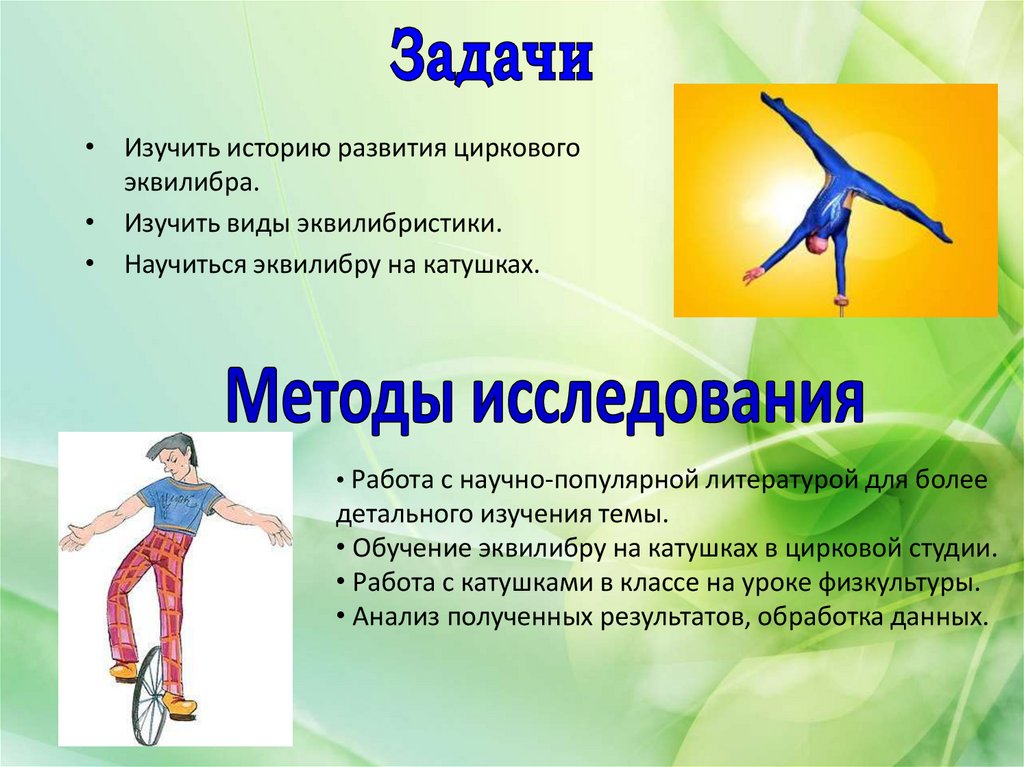 • Изучить виды эквилибристики.