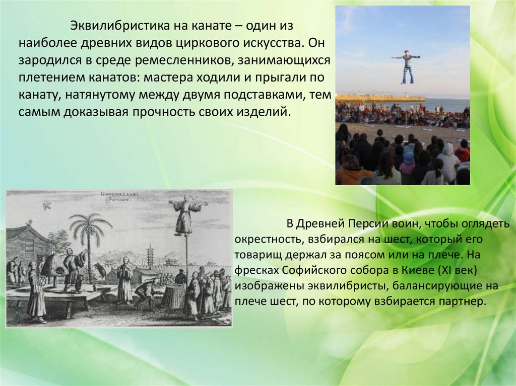Эквилибристика на канате – один изнаиболее древних видов циркового искусства. Он