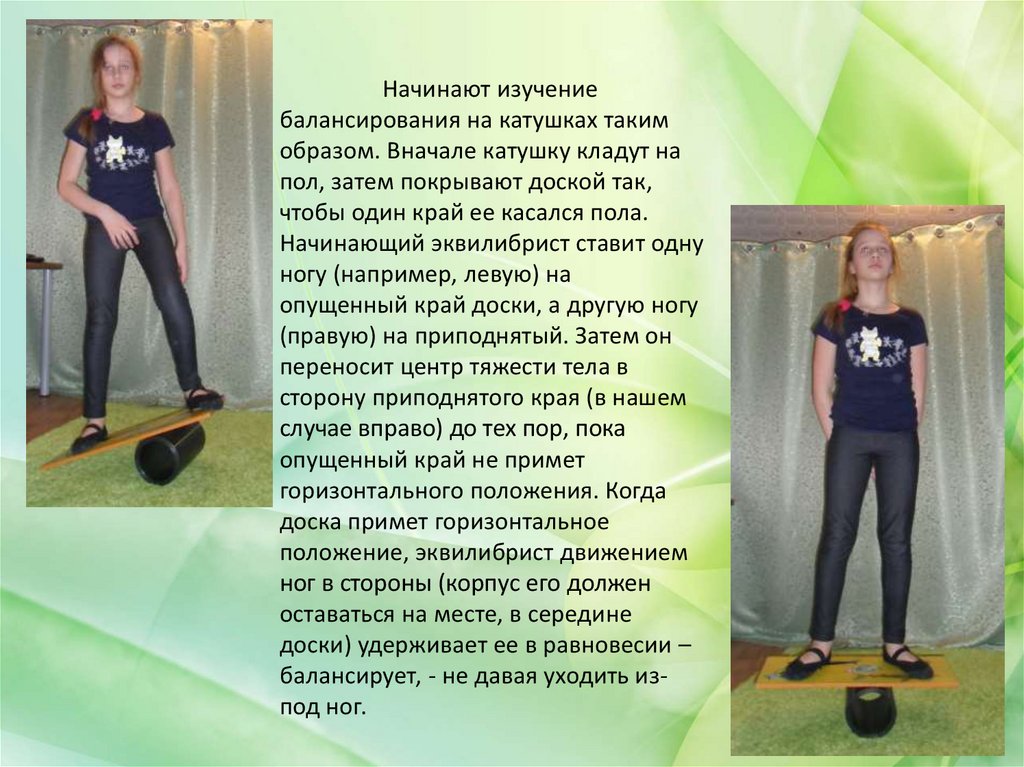 Начинают изучениебалансирования на катушках таким