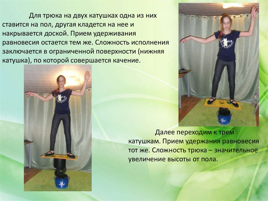 Для трюка на двух катушках одна из нихставится на пол, другая кладется на нее и