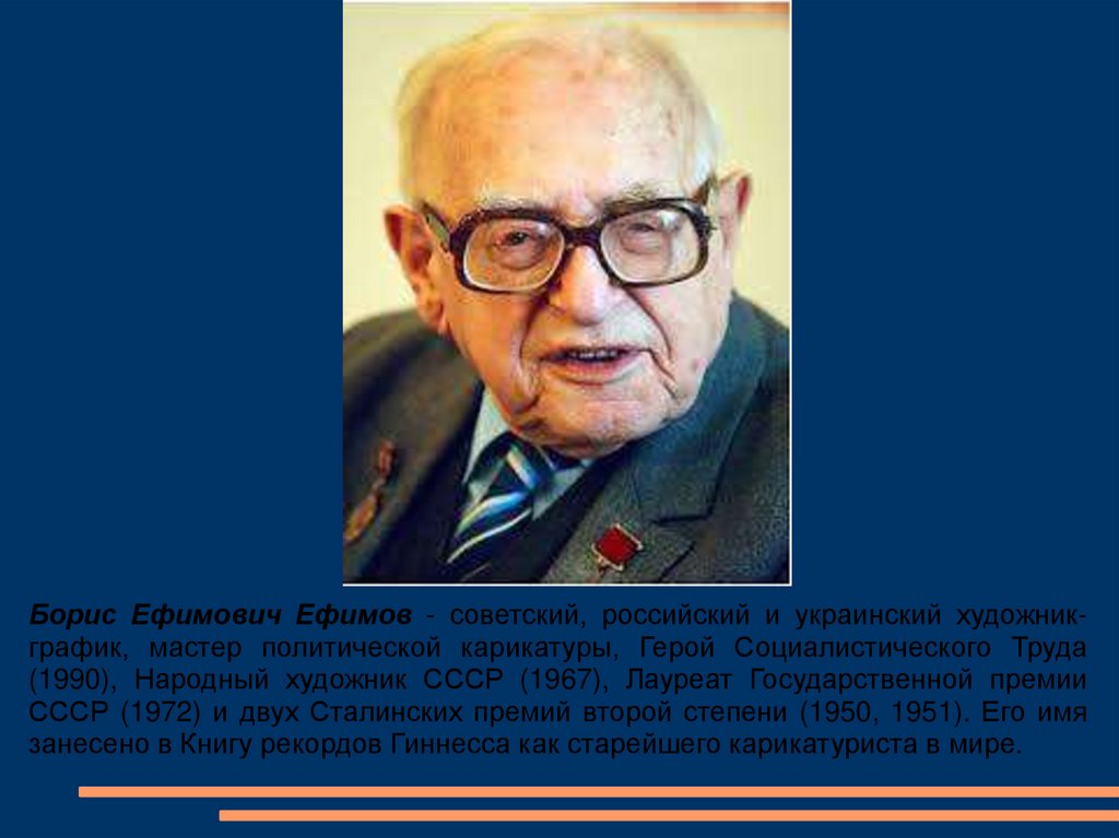 Борис Ефимович Ефимов - советский, российский и украинский художникграфик, мастер политической карикатуры, Герой Социалистического Труда(1990), Народный художник СССР (1967), Лауреат Государственной премии