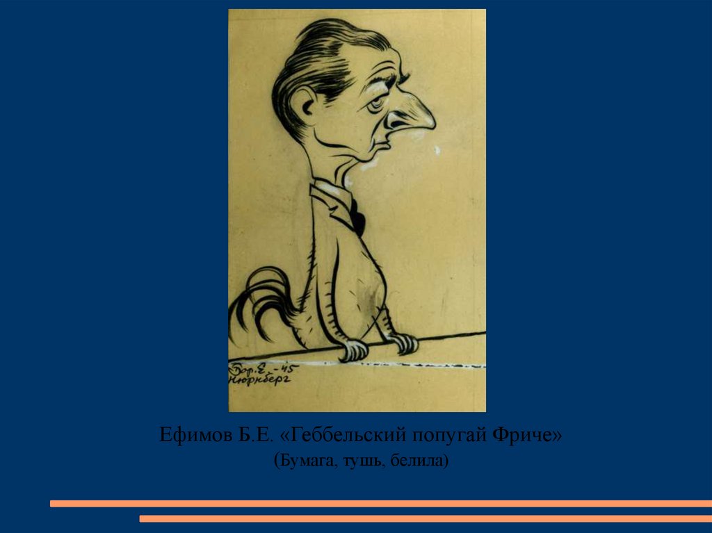 Ефимов Б.Е. «Геббельский попугай Фриче»(Бумага, тушь, белила)