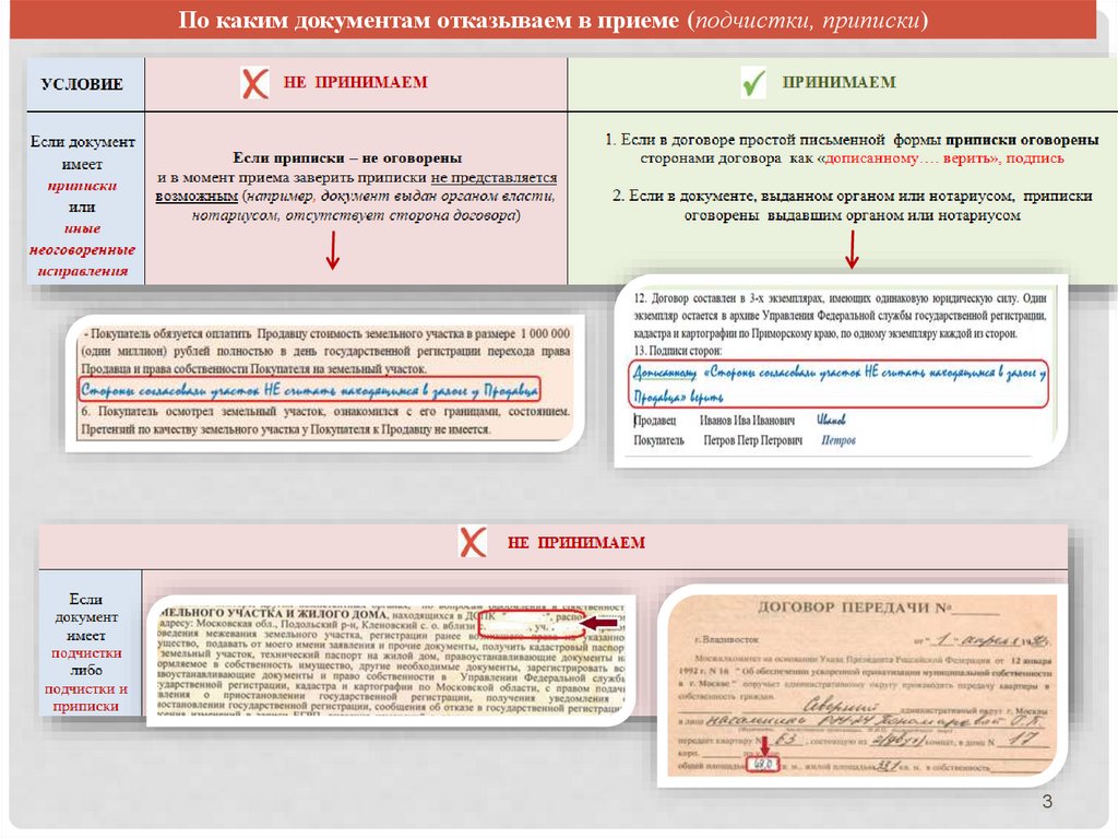 По каким документам отказываем в приеме (подчистки, приписки)3