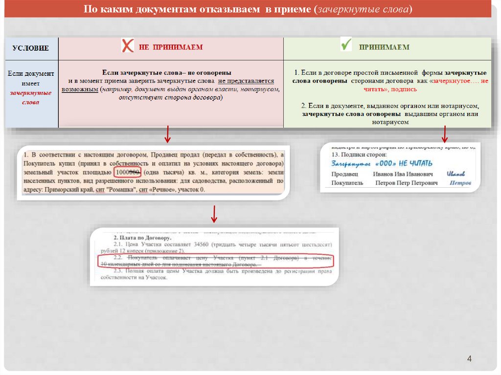 По каким документам отказываем в приеме (зачеркнутые слова)4
